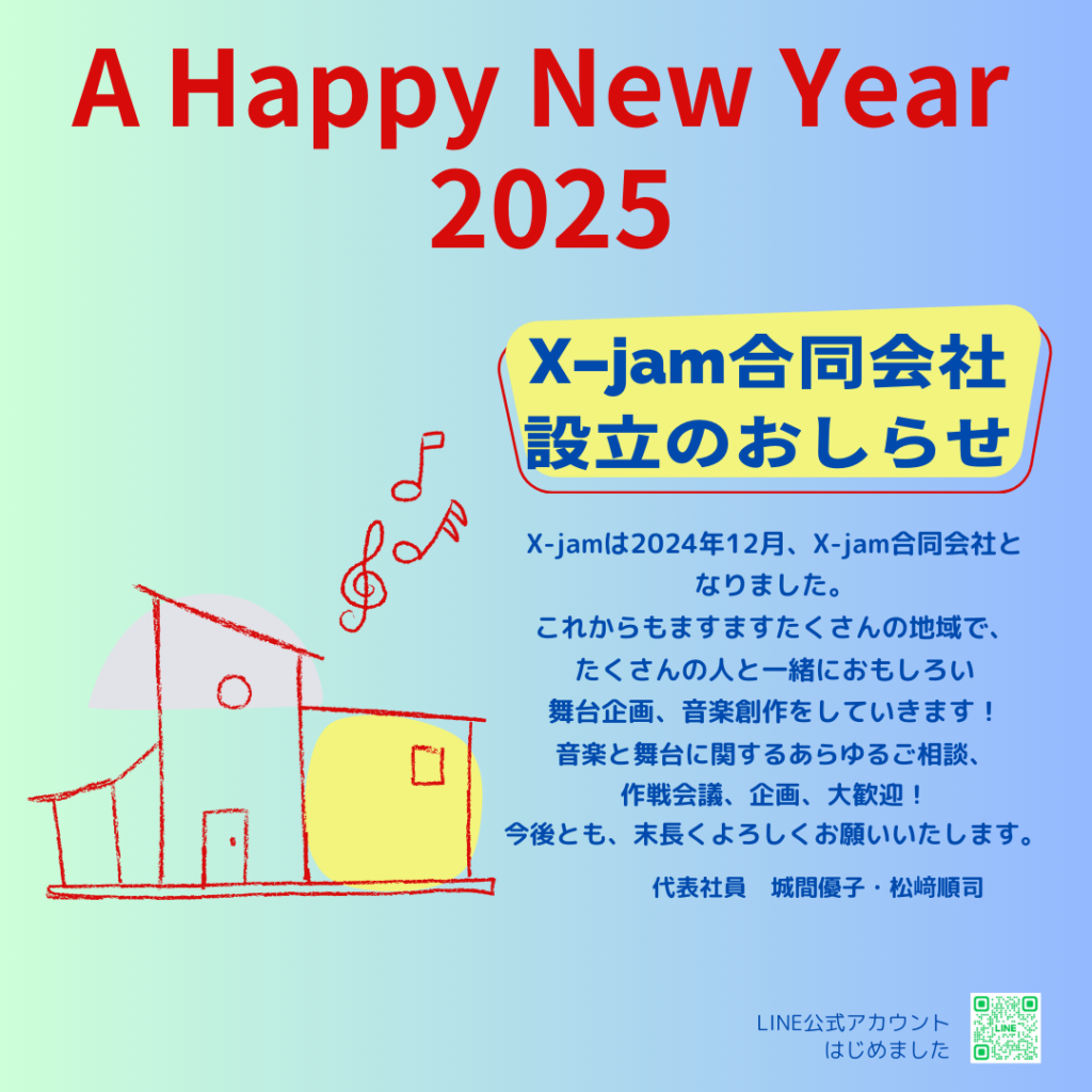 2024年末、私たちはX-jam合同会社となりました。 これまで以上に、多くの仲間とつながって、いろいろな企画ができたら、 新しいことにも挑戦していけたら、 という気持ちで、法人となりました。 面白い!と思えることにカタ[…]