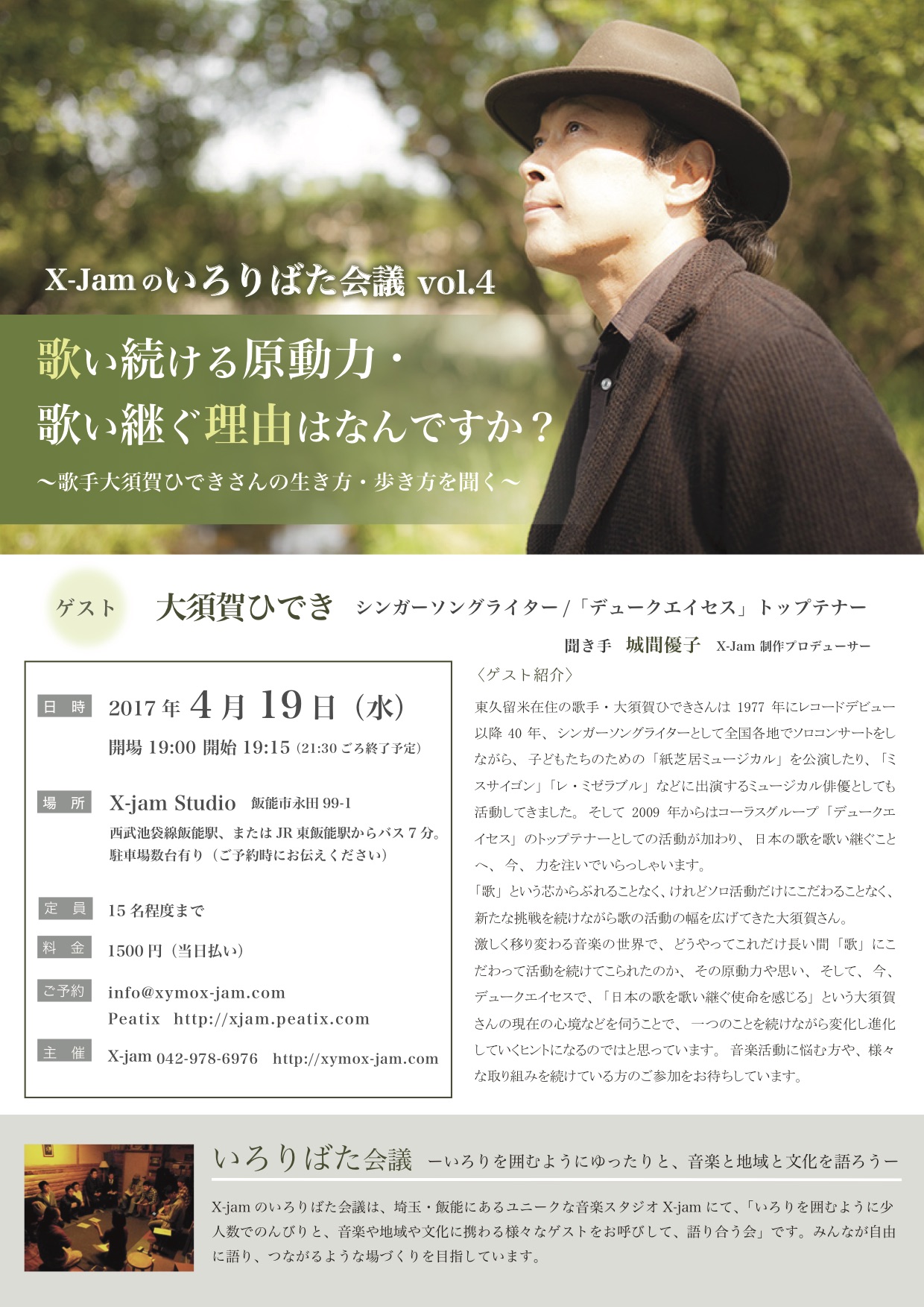 X-jamのいろりばた会議Vol.4 「歌い続ける原動力・歌い継ぐ理由はなんですか?〜歌手大須賀ひできさんの生き方・歩き方を聞く〜」