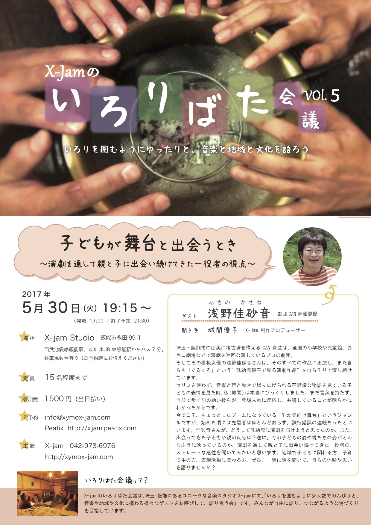 X-jamのいろりばた会議VOl.5 「子どもが舞台と出会うとき~演劇を通して親と子に出会い続けてきた一役者の視点~」